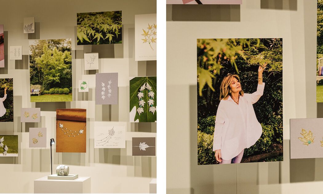 Amidst natural maple leaves, original sketches, and photographs of Lola Pascual's own garden, attendees had the opportunity to discover firsthand and up-close the creative process behind this project, which extols the organic and inherent beauty of nature through the most exclusive jewelry creations.