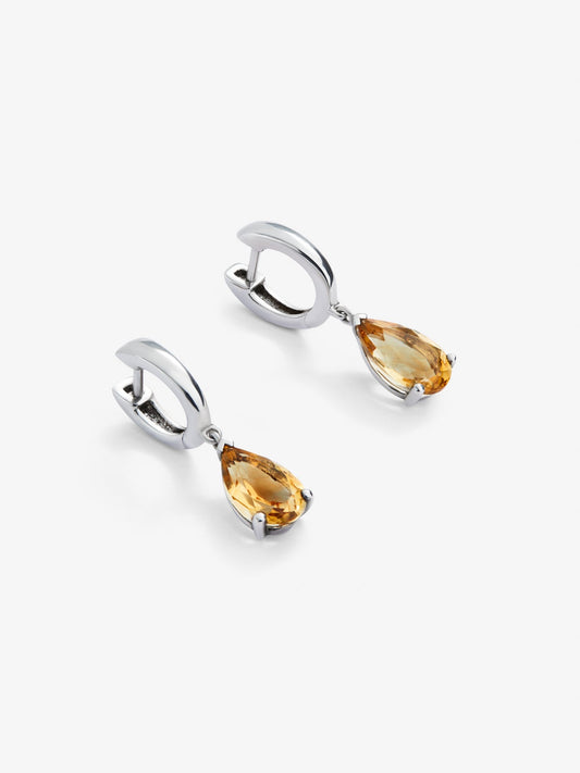 Pendientes de aro de plata 925 con cuarzos citrinos amarillos en talla pera con un total de 2,88 ctsRegular price 1,460 SRRegular priceUnit price perSale price 1,460 SR -