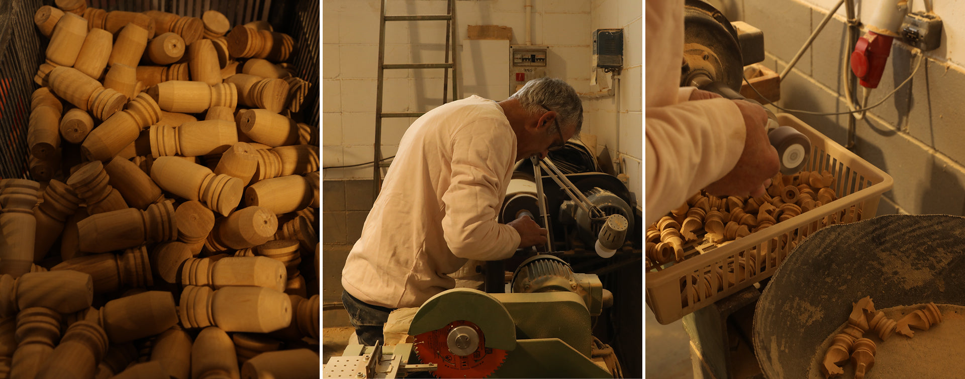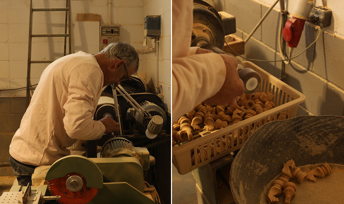 Cada pieza está torneada a mano en madera de boj, siguiendo técnicas que se han transmitido durante generaciones y que muestran la singularidad que solo la artesanía puede ofrecer.