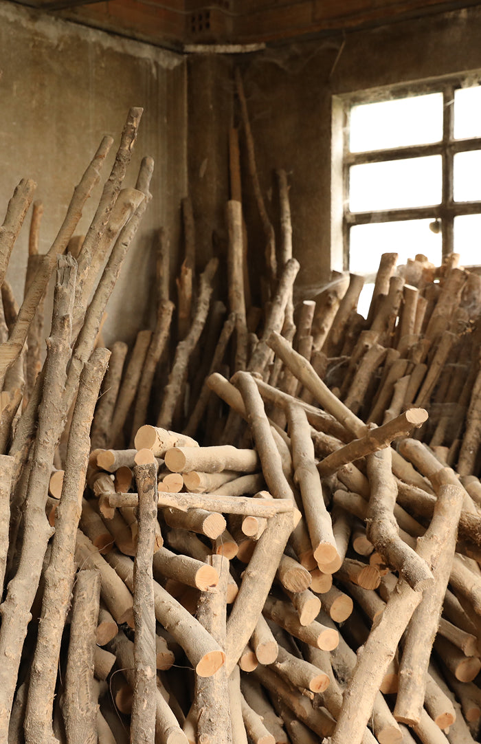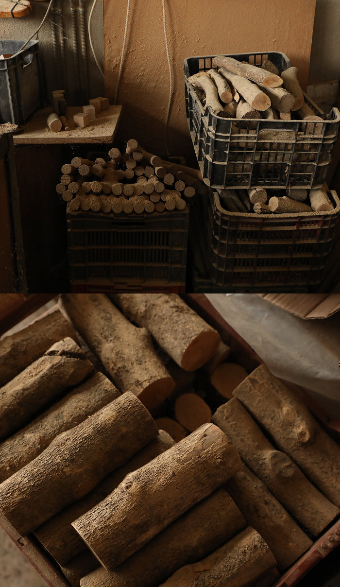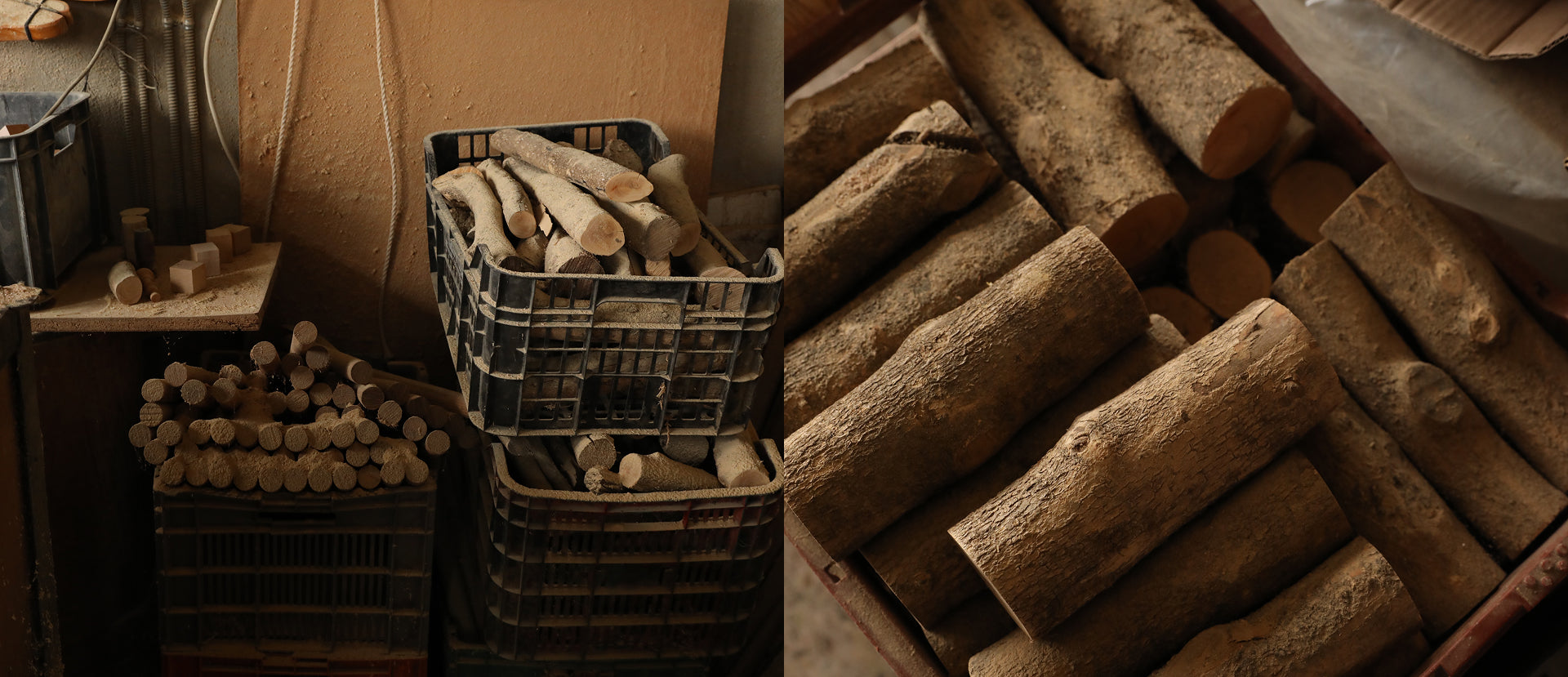 Es dura, con poco poro y un color natural ideal. Su peso garantiza estabilidad sobre el tablero, y sus imperfecciones nos obligan a revisar cada pieza cuidadosamente, lo que hace imposible una producción industrial. Cada tronco cuenta su propia historia y aporta singularidad a cada juego.