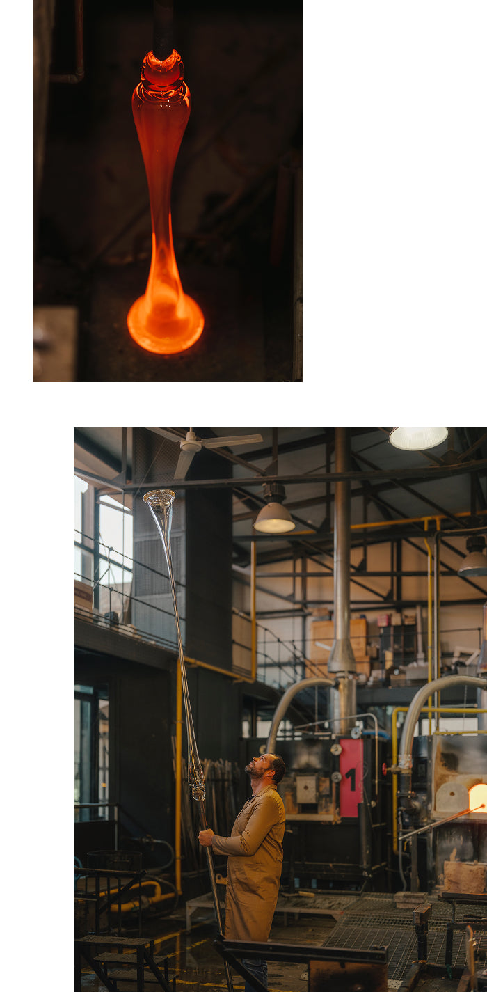 El trabajo mano a mano con sus maestros vidrieros, cuyo conocimiento se transmite desde el siglo XVIII, permite lograr una fusión perfecta entre técnica milenaria y diseño contemporáneo.