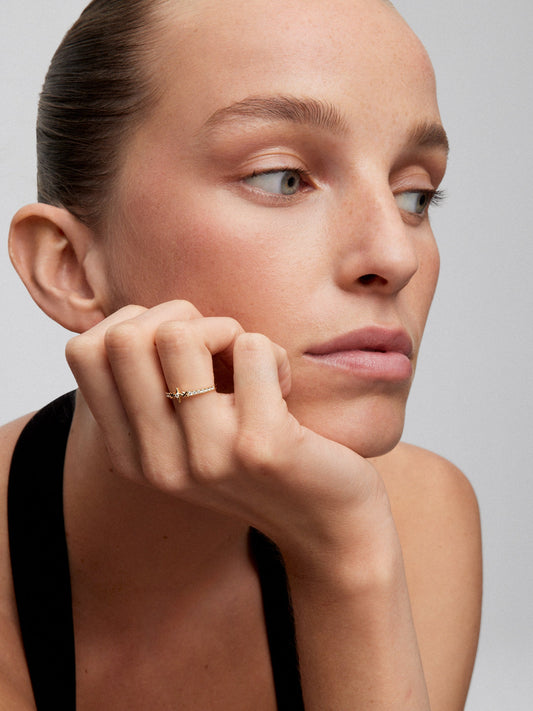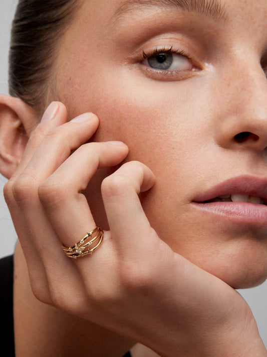 Anillo multibrazo de oro amarillo de 18K con 9 diamantes en talla brillante con un total de 0,08 ctsPrecio habitual 12,950 SRPrecio habitualPrecio unitario porPrecio de oferta 12,950 SR -