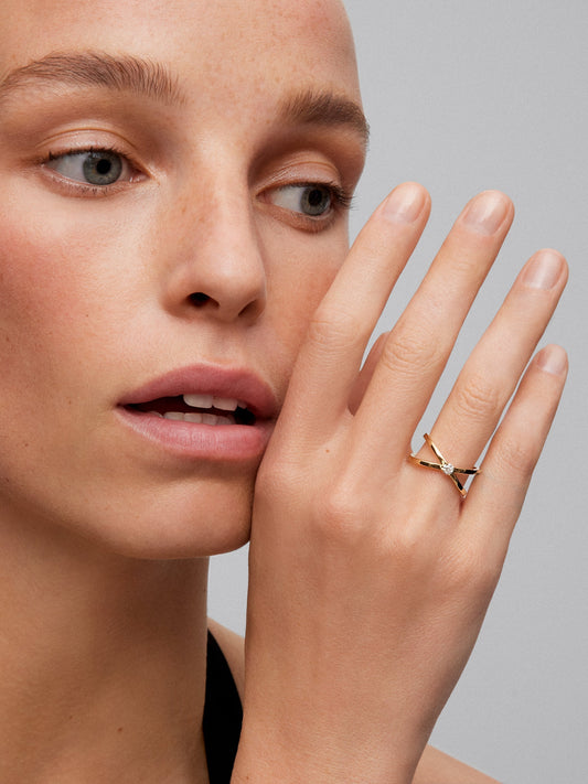 Anillo multibrazo de oro amarillo de 18K con 9 diamantes en talla brillante con un total de 0,08 ctsPrecio habitual 12,950 SRPrecio habitualPrecio unitario porPrecio de oferta 12,950 SR -
