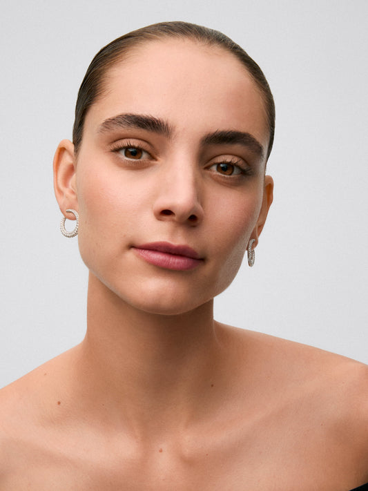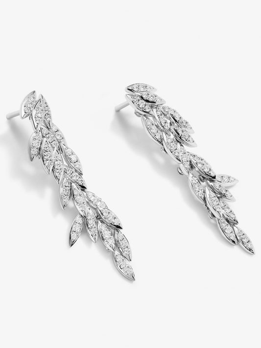 Pendientes de oro blanco de 18K con 2 diamantes centrales, pavé de diamantes y forma de hoja de arcePrecio habitual 64,330 SRPrecio habitualPrecio unitario porPrecio de oferta 64,330 SR -