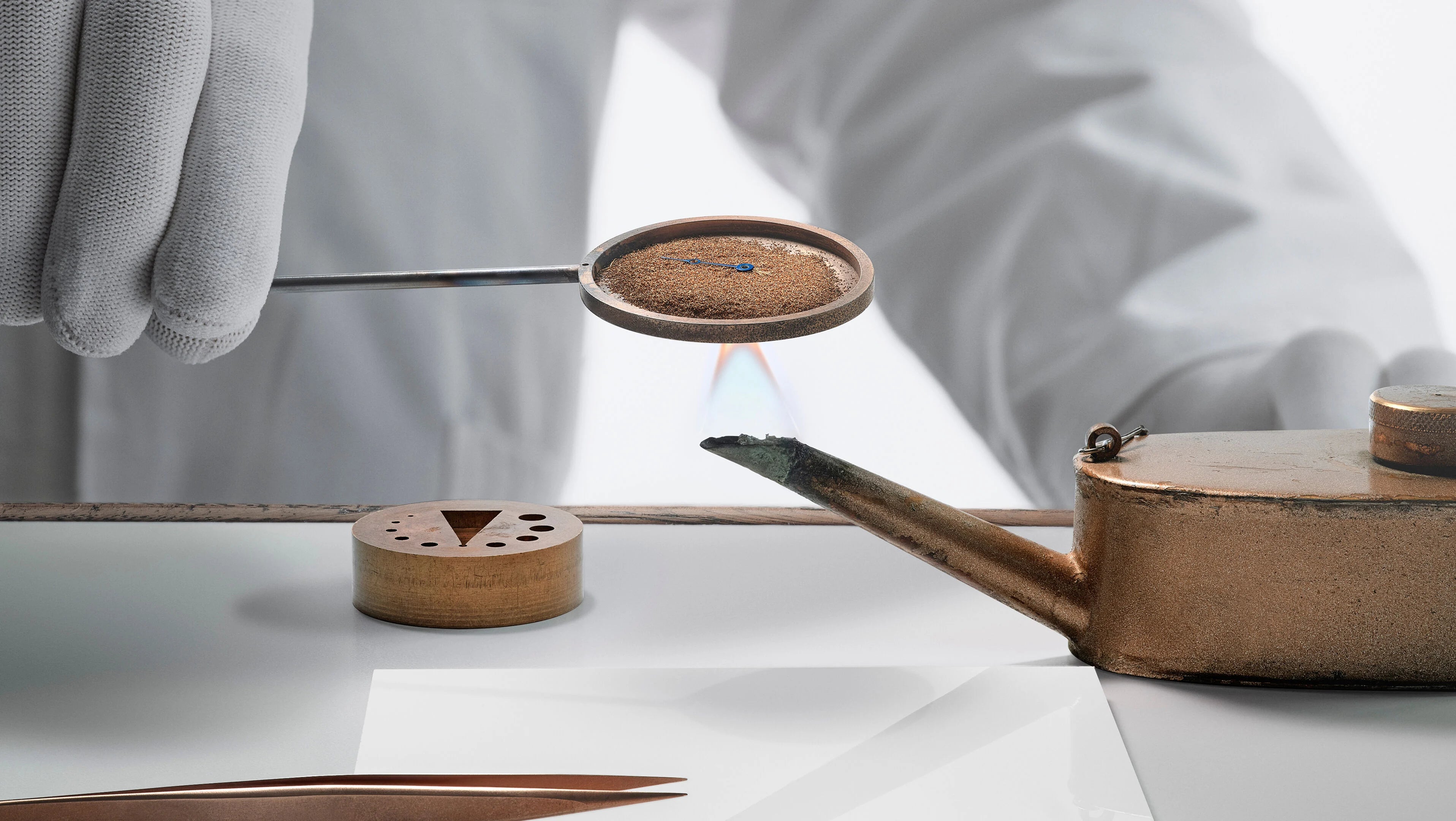 La caja, rematada por un cristal de zafiro con perfil chevé, está elaborada a partir de un oro de 18K que la casa ha desarrollado especialmente para a ocasión. Una aleación única conocida como “oro Breguet” compuesta por un 75% de oro, enriquecido con plata, cobre y paladio que garantiza durabilidad, resistencia a la decoloración y un brillo único lleno de sofisticación.