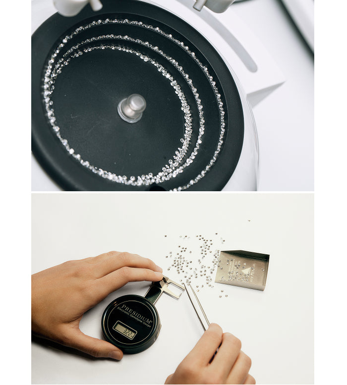 La familia Suárez compra la materia prima personalmente, descartando un 99.5% de los diamantes que se analizan. Una a una, todas las piedras son examinadas por nuestros gemólogos expertos para asegurar que cumplen con el exigente estándar de calidad de Suarez.
