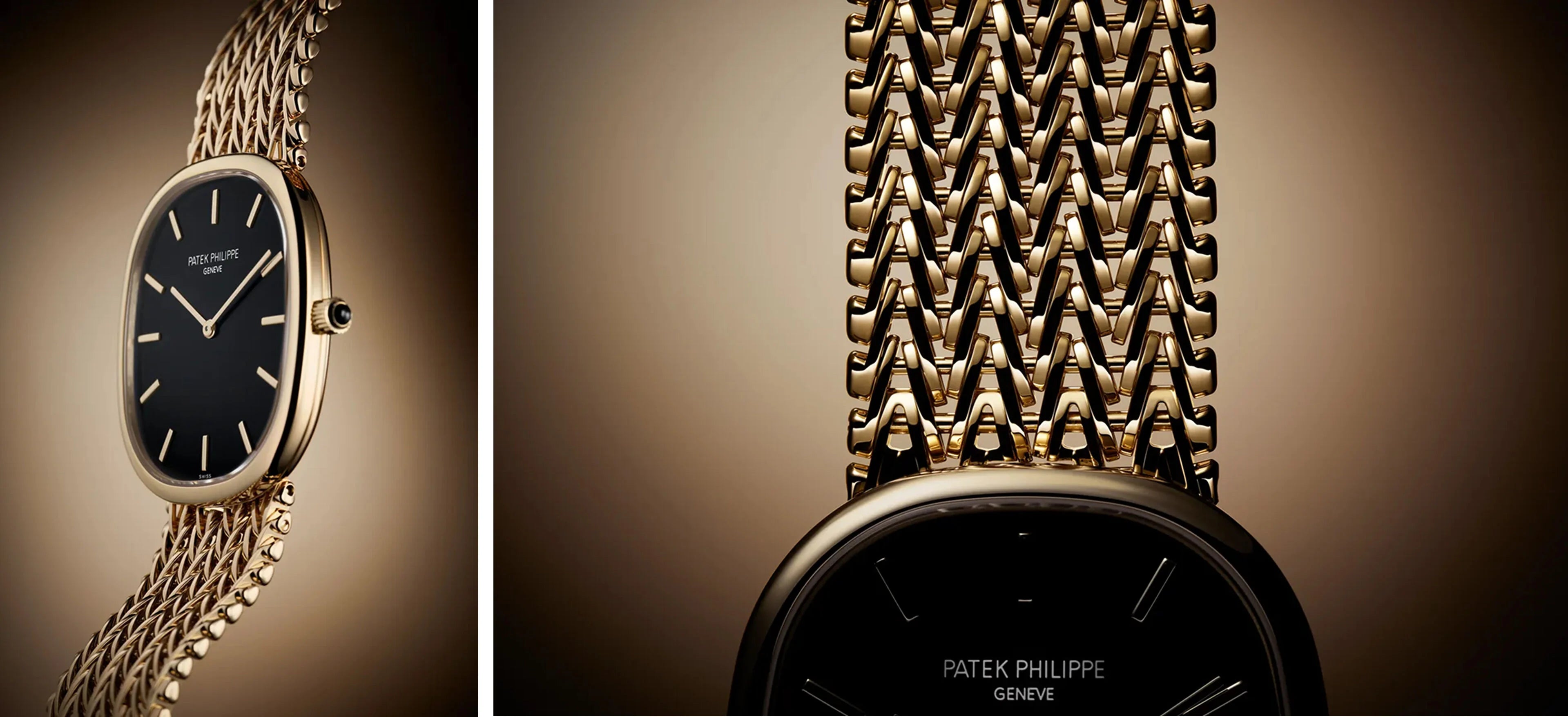 Con este diseño la manufactura rememora esa estética de los 70, una época en la que el Golden Ellipse era uno de los modelos más emblemáticos, reintroduciendo y reinventando el brazalete de "cadena", y tendiendo además un puente hacia aquella época dorada del diseño relojero.