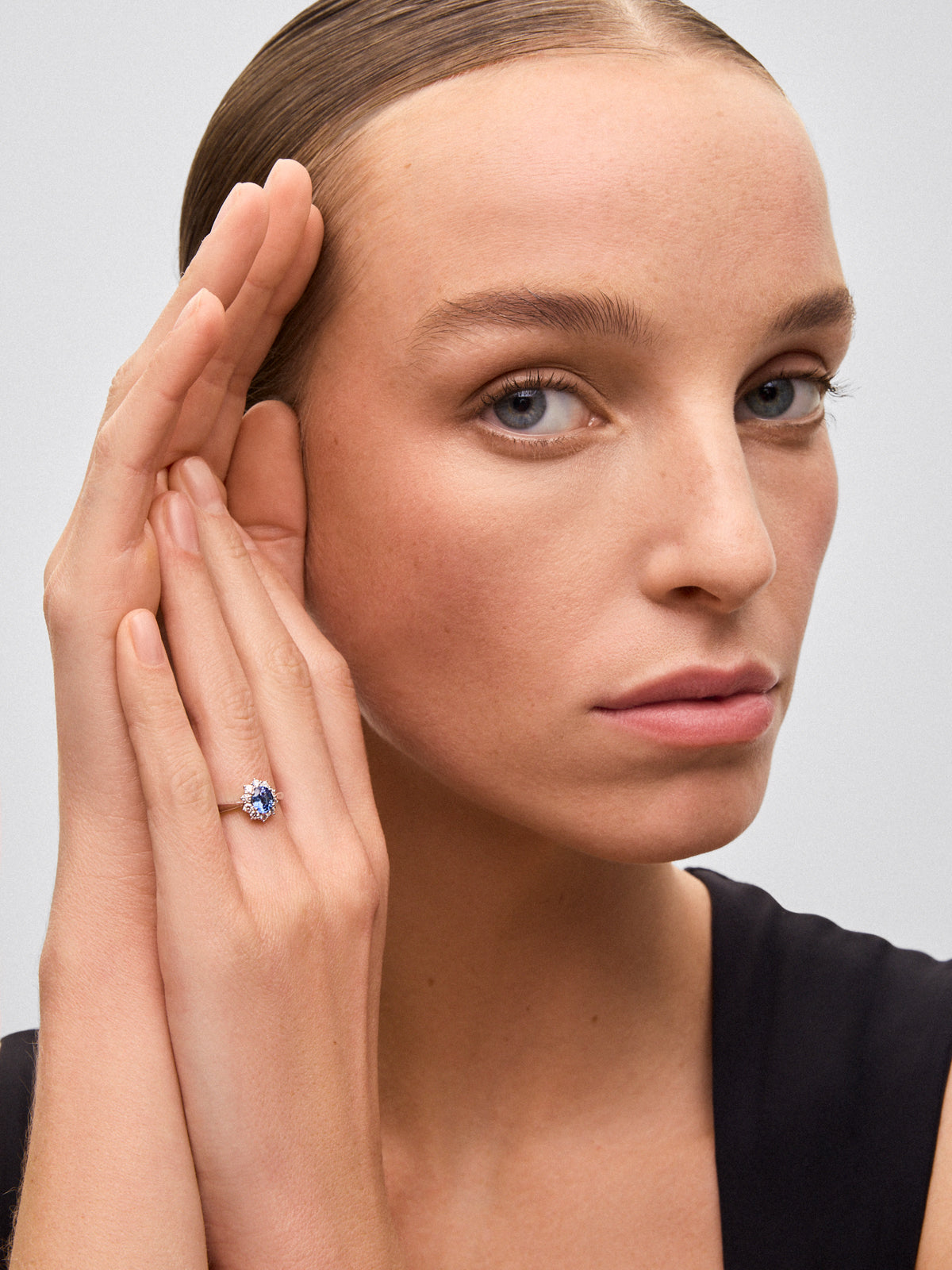 Esta sortija de la colección Big Three combina dos de las piedras preciosas más exclusivas de la naturaleza, el zafiro y el diamante, en una composición exquisita y delicada que decorará tu mano en los momentos más especiales. Esta joya ha sido elaborada utilizando los más selectos materiales, a partir de un cuidado diseño y la mano de obra de nuestros maestros joyeros. Esto convierte la pieza en una obra de artesanía completamente única.