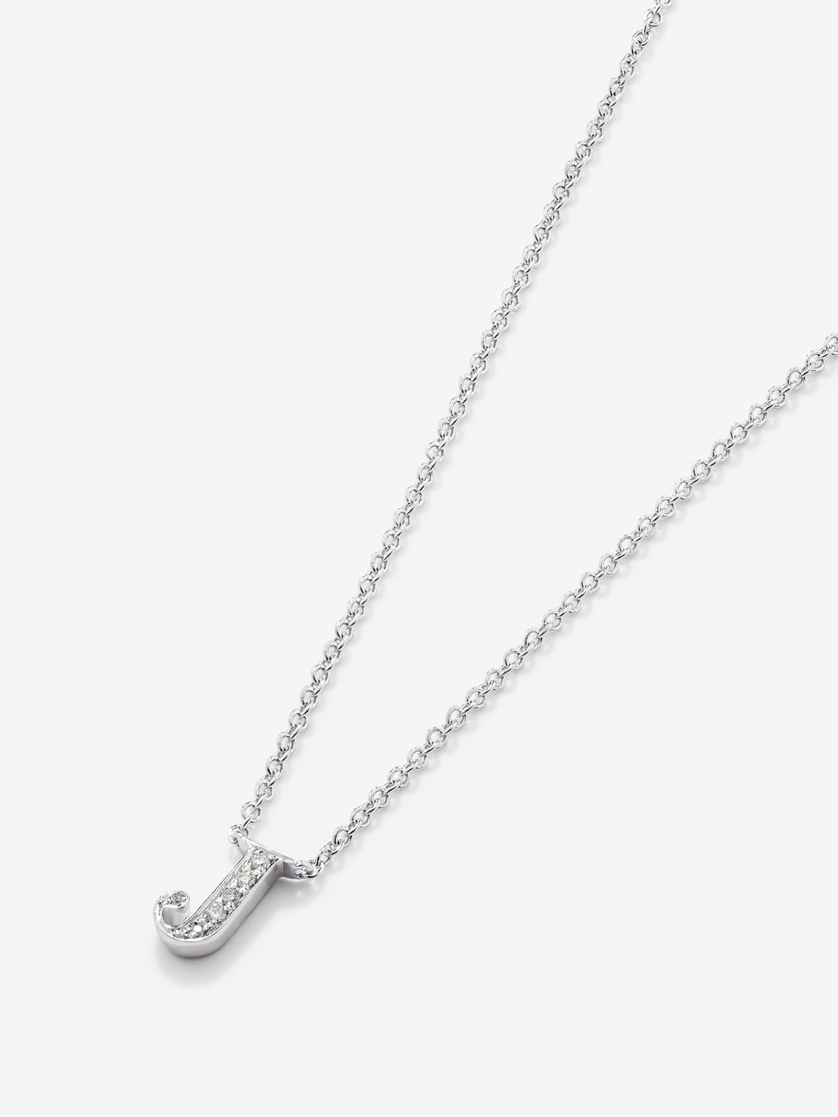 La joya con inicial elevada gracias al sello artesanal de Suarez: la J de esta pulsera de la colección Grace en oro blanco está recorrida por pequeños brillantes. Sutiles destellos de luz en una pieza elegante y discreta.